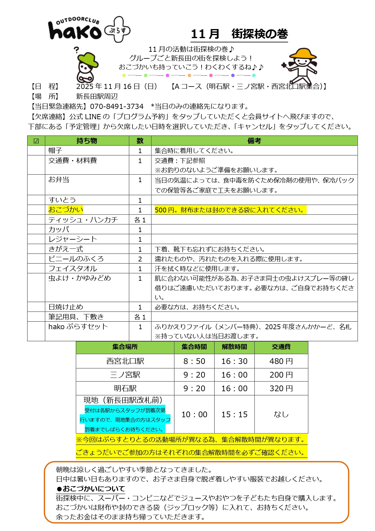 ※活動場所は月によって異なります。集合場所より公共交通機関(電車・バス)で移動します。