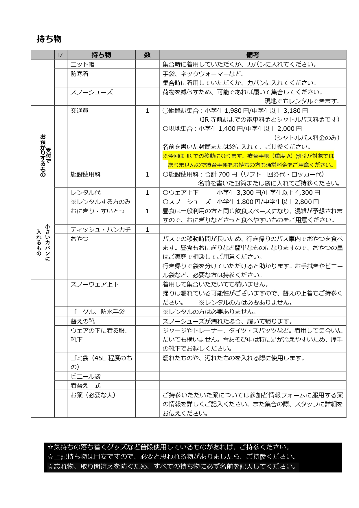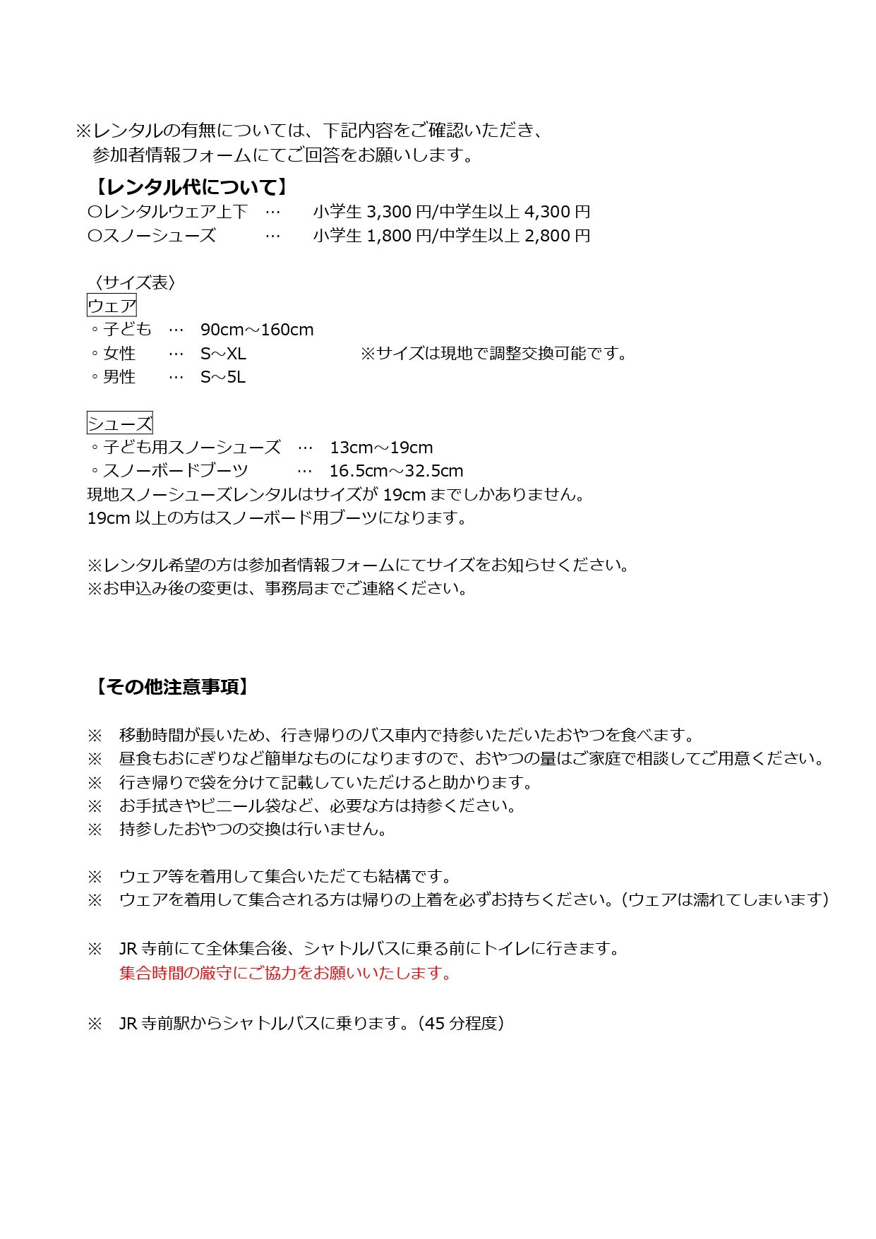 当日のスケジュールや行程、持ち物や集合解散時間などを記載しています。ご参加の前に毎回必ずご一読いただきご参加くださいますようよろしくお願いいたします。